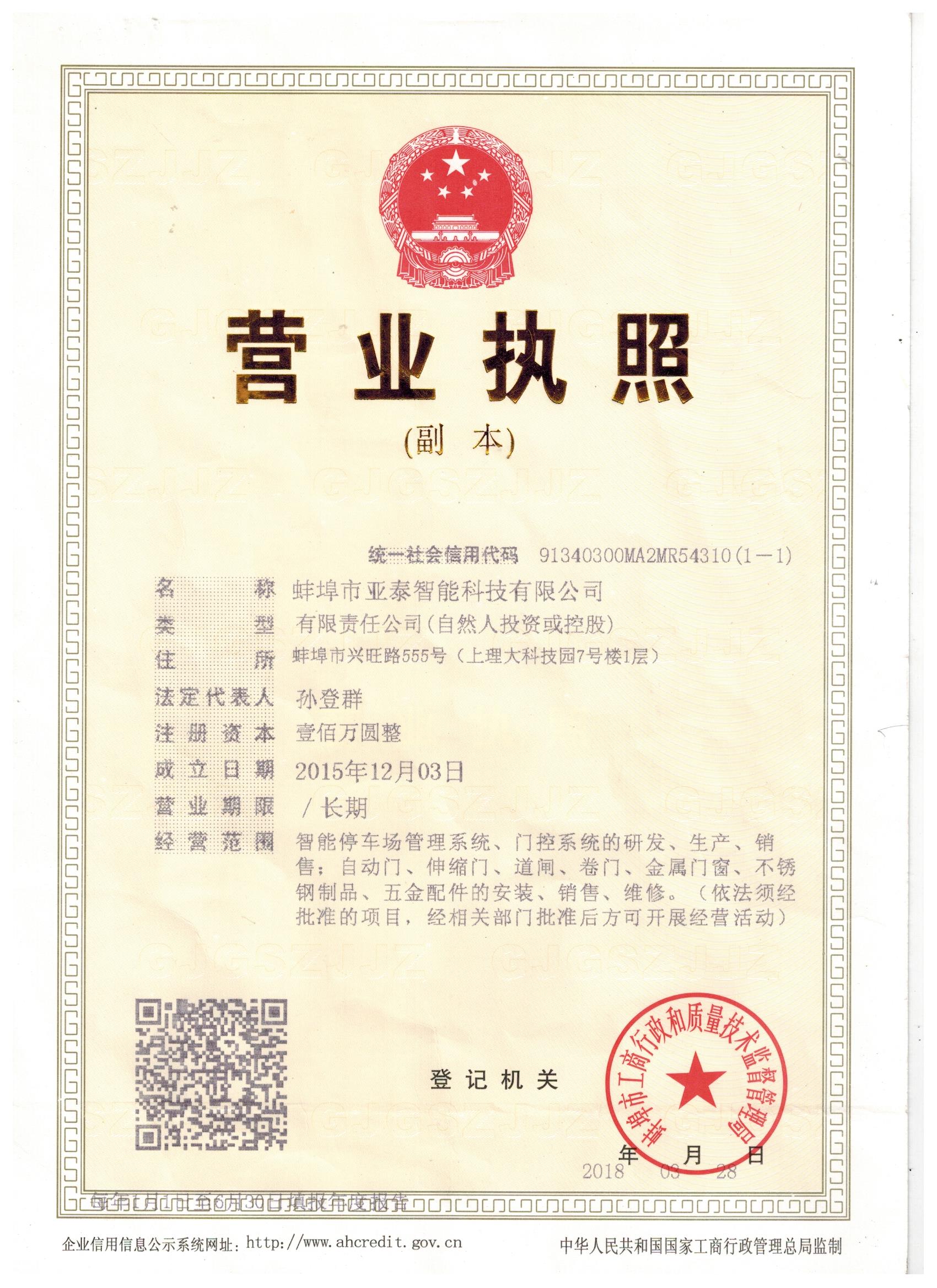 - 蚌埠市亞泰智能科技有限公司是集生產(chǎn)、研發(fā)、銷(xiāo)售和服務(wù)于一體的大型門(mén)類(lèi)企業(yè),主要生產(chǎn)電動(dòng)伸縮門(mén)、道閘、崗?fù)ぁ⑵鞐U等。公司憑借多年的門(mén)類(lèi)生產(chǎn)和經(jīng)營(yíng)理念,并不斷引進(jìn)先進(jìn)的生產(chǎn)工藝技術(shù)和科學(xué)的管理方法、為客戶(hù)生產(chǎn)出各類(lèi)品質(zhì)高,款式新穎的產(chǎn)品。 “簡(jiǎn)...